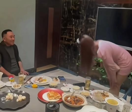 随着画面的转换,几人出现在饭桌上,粉衣女子恭恭敬敬地给杨议敬茶。