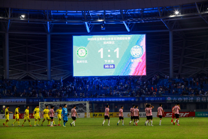 10月1日晚,2025年山东省齐鲁足球超级联赛滨州赛区迎来首个主场比赛,在主场近15000名球迷的呐喊助威声中,滨州队踢出了如潮攻势。下半场在首先打进一球的情况下,先后一次击中横梁、一次击中立柱、一次空门不进,补时最后一分钟被乌龙绝平,最终与东营追风少年队战成1:1平。