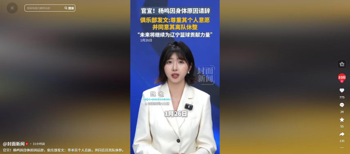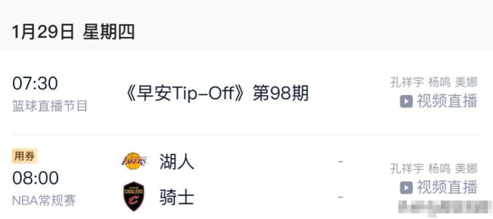根据腾讯体育的预告上有,1月29号,也就是辞职两天后,杨鸣就要上演播室,解说湖人对骑士的比赛。
