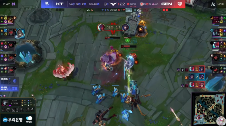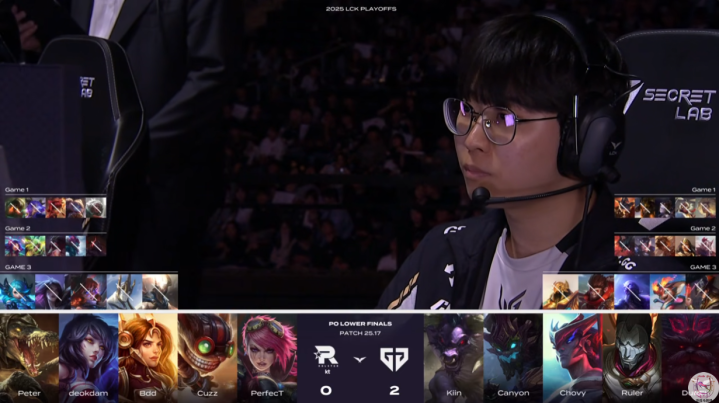 今年LCK季后赛最大爆冷就是KT在被GenG挑选成为对手之后,没想到居然以3-2击败了GenG晋级到了胜者组决赛。大家都很清楚这确实是一场意外爆冷局,而且即使在KT全员超常发挥的情况下,也还是打满了Bo5。GenG自然是没有任何压力从败者组一路杀回到了败决,并且再次对战KT。而就像HLE此前3把人机局把KT打入败者组一样,GenG的这次复仇也没有再给KT任何机会,最终以3-0轻松获胜。