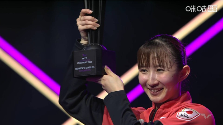 女单颁奖礼,张本美和虽然遗憾获得亚军,但依然笑开颜,张本美和目前依然还没有获得过冠军赛的女单冠军,去年蒙彼利埃冠军赛张本美和也是输队友大藤沙月无缘冠军。而冠军早田希娜笑不停,这个冠军来得非常及时,早田希娜在巴黎奥运会后,很长一段时间都没有获得国际比赛的女单冠军。