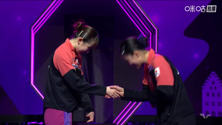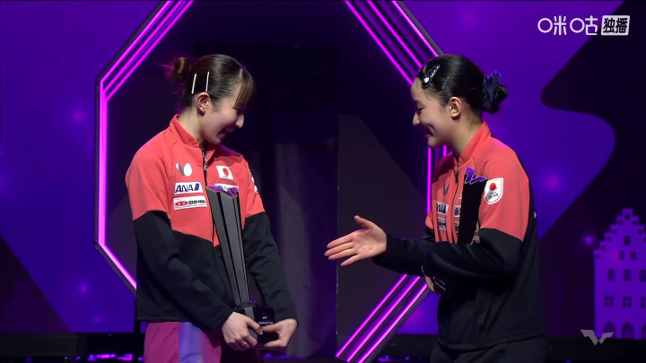 张本美和也是主动伸手祝贺早田希娜获得女单冠军。