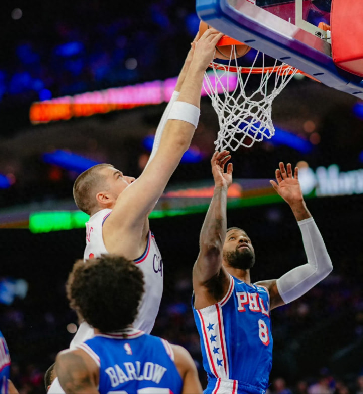 乔治复出,快船战76人,哈登同样也是面对旧主;登子开局状态持续火热首节17分帮助快船领先的同时,也让自己的得分突破28000分里程碑,NBA历史第十一人!快船领先了三节半,末节马克西连过哈登、祖巴茨上篮完成反超。哈登再次三分球绝杀失败空砍28分6篮板5助攻;快船马克西超级小火车39分6助攻、庄神14分18篮板、埃奇库姆14分、乔治复出手感不佳9分7篮板。