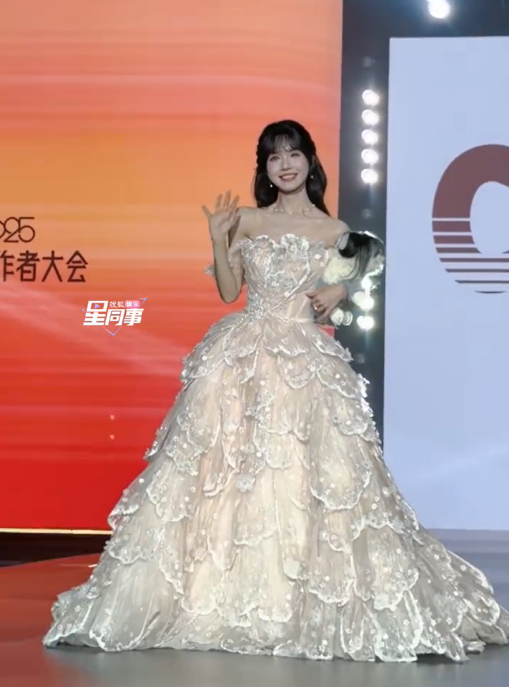上次她一件礼服穿三次上过热搜,看来目前她的资源还没有适配上她现在的咖位,这件衣服仍不精美,全靠脸支撑。