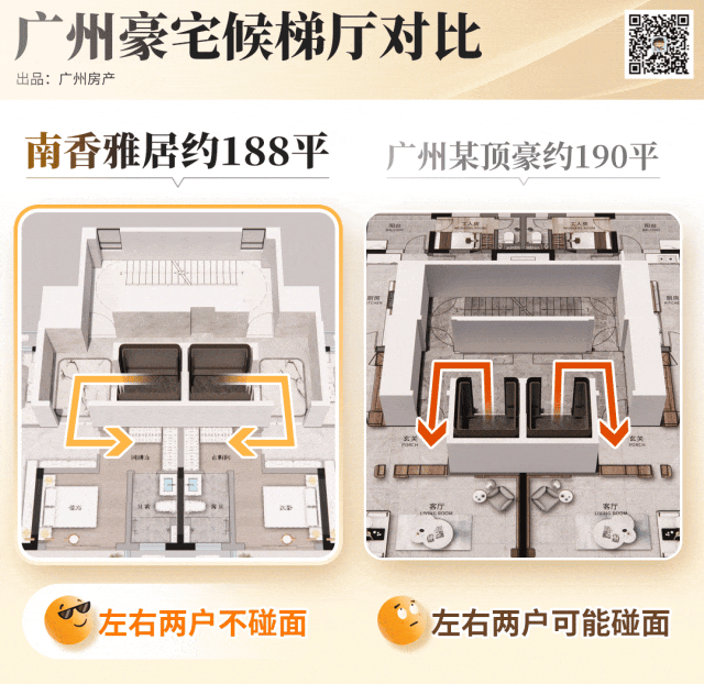 一个是,南香雅居属于新规产品,实用率高达约118%,而普通豪宅实用率通常只有约80%。