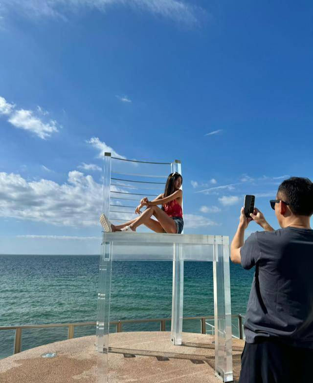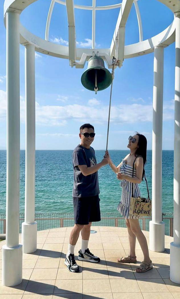 夫妻二人在海边的网红景点还专门拍了合照,合照中林文龙和妻子还做出比心的动作,看起来十分甜蜜,相信为他们拍照的就是女儿林天若。