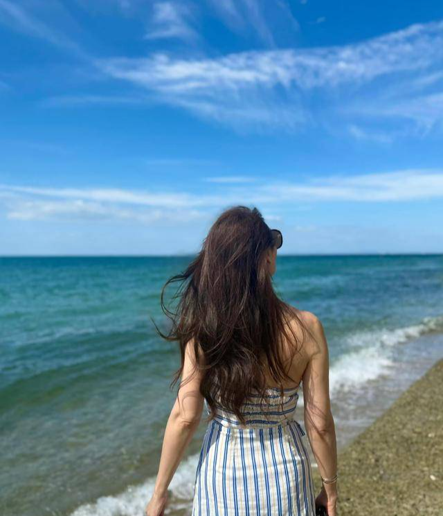 吃饱饭后一家人就去海边散步,纵然阳光过于刺眼,郭可盈也没有没抱怨,反而尽情的享受日光浴,看来这次的旅程她真的很满意。
