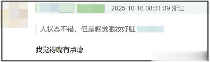 近看面部状态更是让网友吃惊,不仅眼纹和法令纹很明显,面部纹路也很多,整体面部肌肉都有下垂的趋势,状态也很疲惫,年龄感非常明显,妆容更是红一块白一块,完全不均匀。