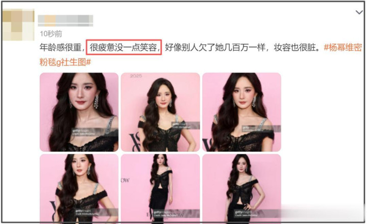 也有网友发现杨幂在那么多张外媒生图里,不仅状态疲惫,脸上更是一点儿笑容没有,有种不敢笑也笑不出来的感觉,显得长相都有些寡态了。