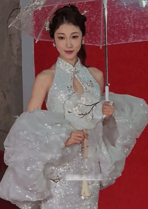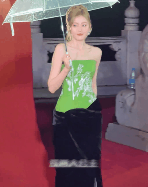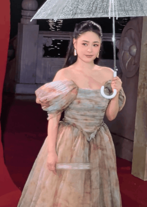 因为脸蛋圆润,而更显嫩的极致骨相脸,撑伞站在红毯上,眉目如画,雅致端庄,以至于让人一旦看到这个人,于顷刻间似进入“仙乐”那类特定情境,仿若置身其中领略拥有神女爱世人那般温柔与高贵之意味 。